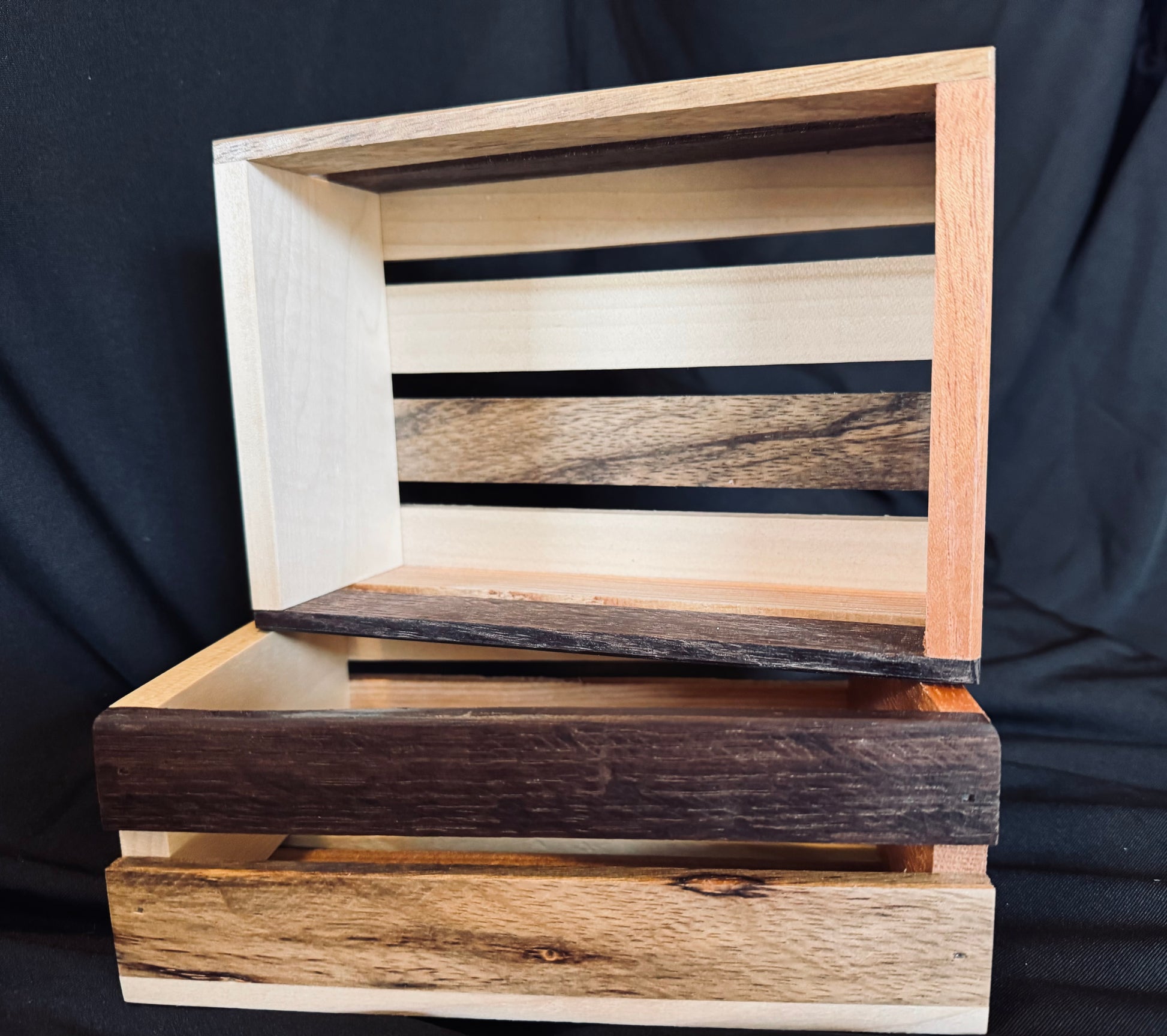 These handcrafted, multi colored wood gift trays make a thoughtful gift even more beautiful! Each tray is unique, made with multiple wood species. Create a special package for that special someone today!
